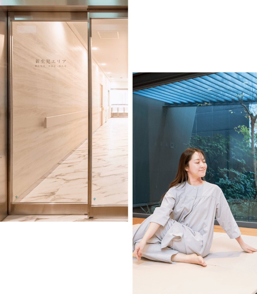 また、出産後も、お母さんの心と体の回復を支えるため、充実したサポートをご用意しています。授乳や育児の悩みに対応する「助産師外来」、産後の休息を目的とした「産後ケア宿泊」など、幅広い支援体制を整えています。出産後も変わらぬ温かいケアで、お母さんと赤ちゃん、そしてご家族の健やかな日々を支えてまいります。