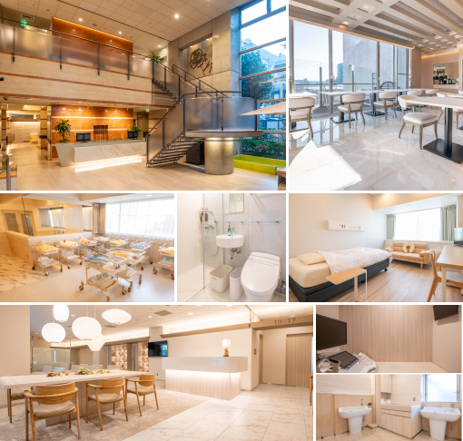 シャワー・トイレ完備の個室入院で、全館でWiFiが使えます。小上がり個室は上のお子さんも一緒に宿泊できます。眺望の良いレストランで、専属シェフが作った管理栄養士監修の体に優しく美味しい食事をお楽しみください。